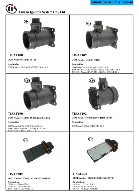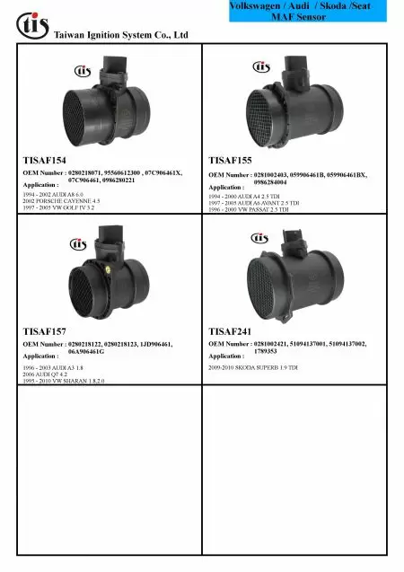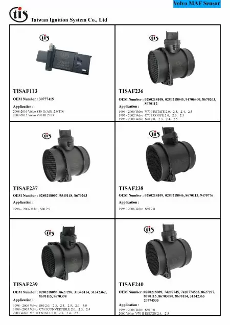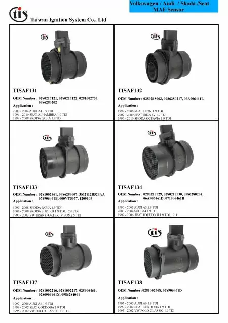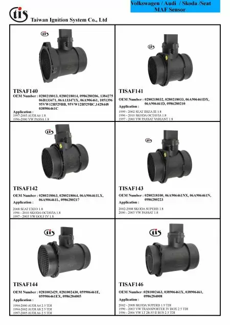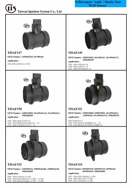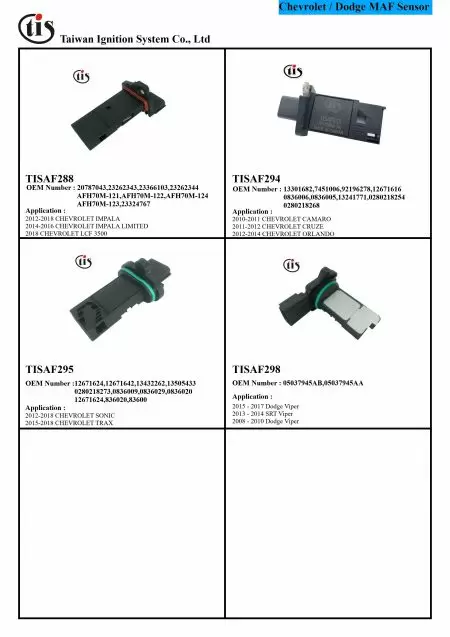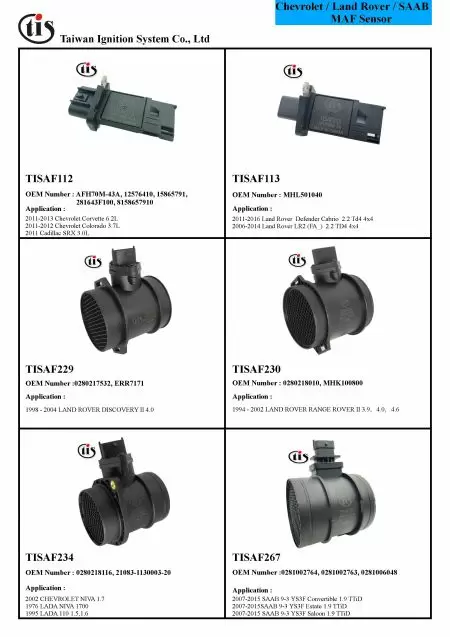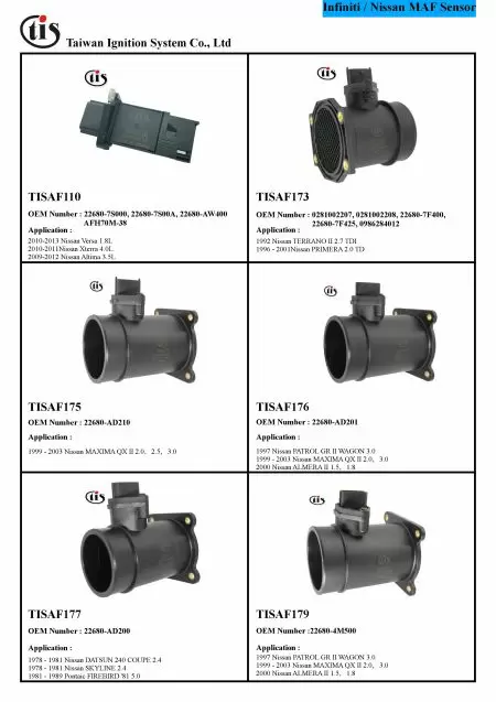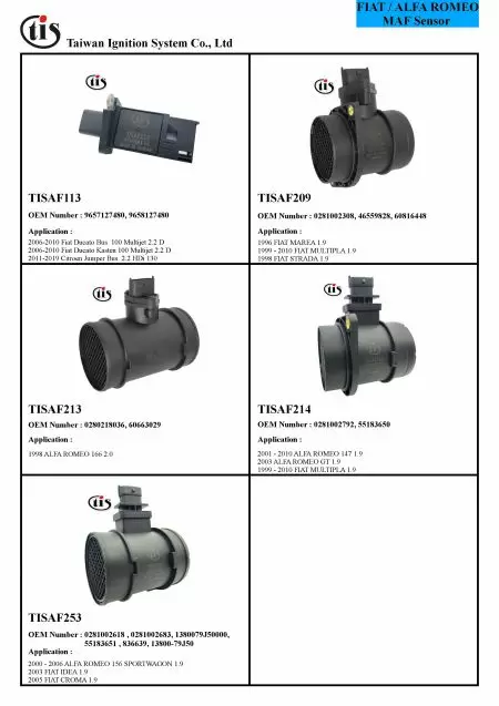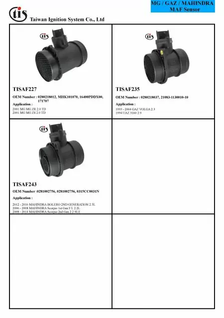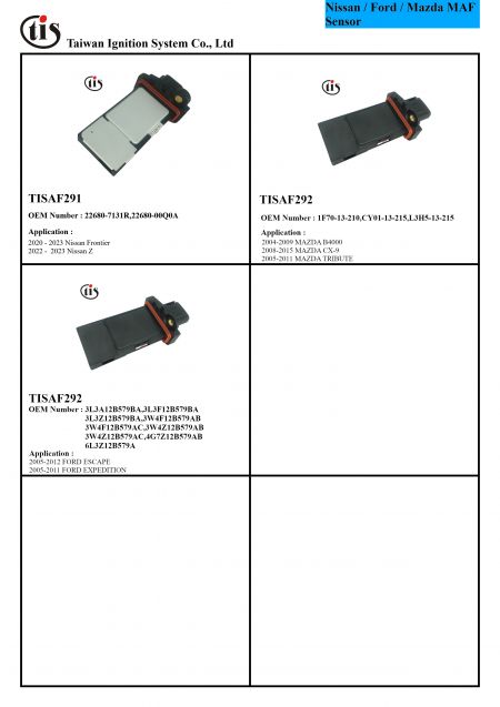 Voici les fichiers PDF de notre catalogue des capteurs MAF. Vous pouvez cliquer sur le lien suivant pour le télécharger.